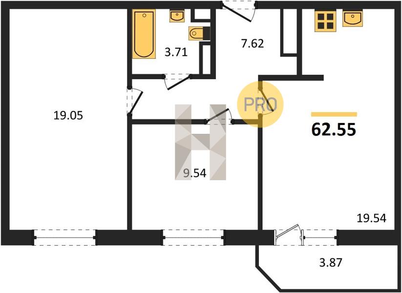 2-комн. 62.55 м²
