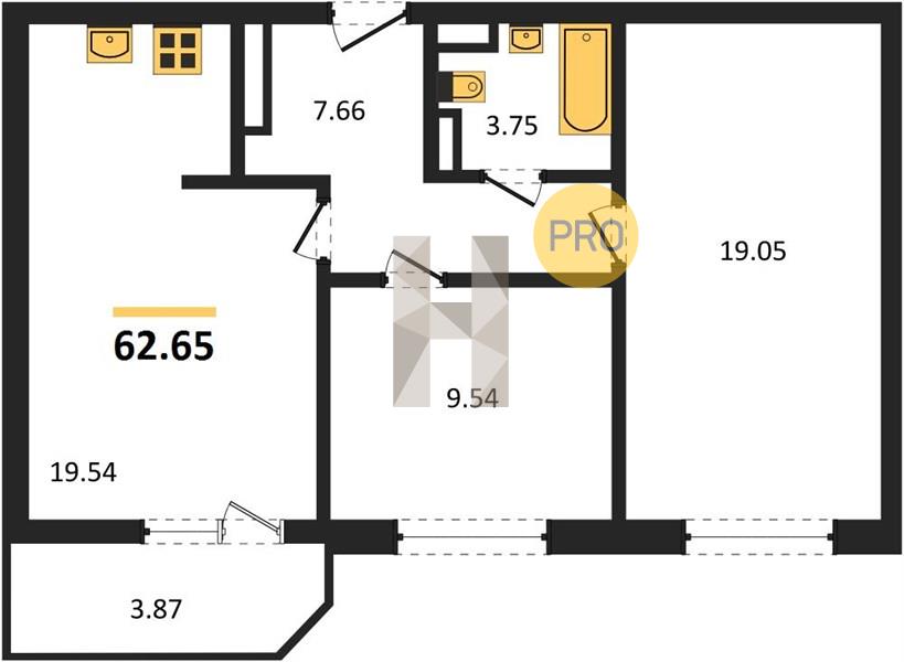 2-комн. квартира 62.65 м² в ЖК «URAL» (Урал)
