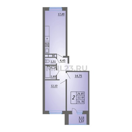 2-комн. планировка 54.76 м² в ЖК «Жилой квартал»