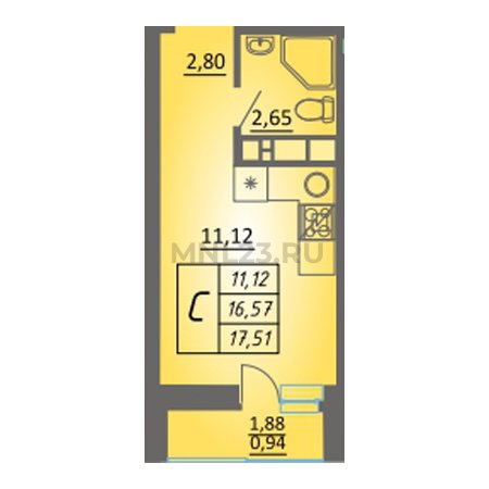 1-комн. планировка 17.51 м² в ЖК «Жилой квартал»